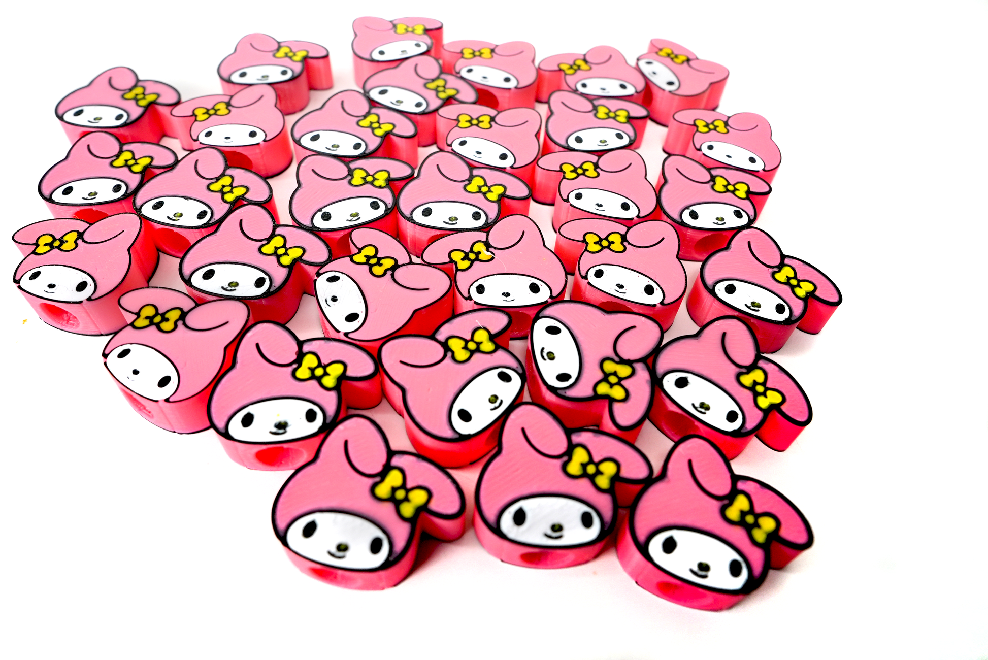A pack of 3D printed Melodyy hairbeads. The holes come in two different size options 6mm in diameter (Braid Friendly) and 10mm in diameter (Loc Friendly).